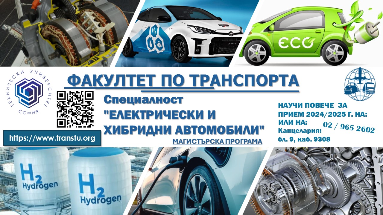 ![]() Специалност: Електрически и хибридни автомобили Професионално направление: 5.5. Транспорт, корабоплаване и авиация Обучение: Редовно За всички, завършили ОКС /"бакалавър/" и/или /"магистър/" по специалности от област: 5. Технически науки Магистърското обучение се провежда по магистърскaта програма: Продължителността на редовното обучение е 1 учебна година, включително разработване на дипломна работа. Завършилите ОКС „Магистър“ в специалността Електрически и Хибридни Автомобили получават необходимите занания и умения за професионална реализация в областта на автомобилния и железопътния транспорт. За ОКС „Магистър“ по специално... |